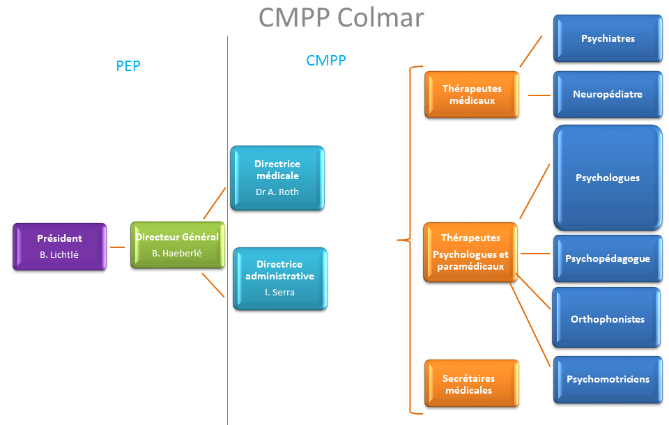 Le CMPP n’est pas un lien où sont juxtaposés divers consultants, rééducateurs ou thérapeutes ayant chacun une action ponctuelle et spécifique. Le travail en équipe transforme et apporte une plus-value à chaque prestation. Les échanges, interrogations, confrontations de ses membres visent à créer une dynamique qui rejaillira, dans un second temps, sur la thérapie proprement dite, de l’enfant.